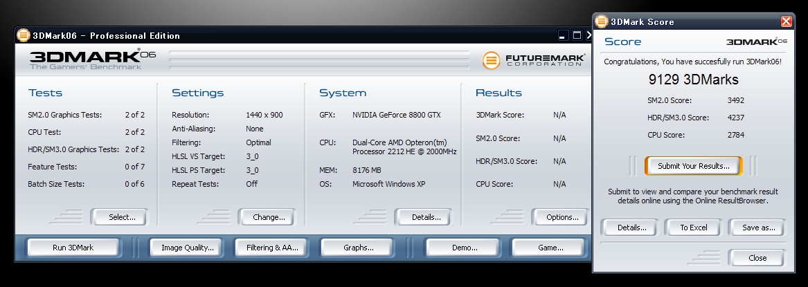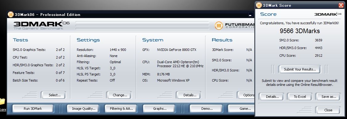 3DMark06でのスコアは以下のようになりました。