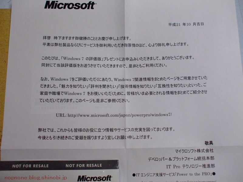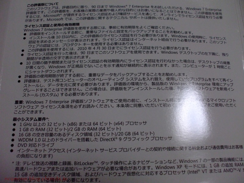 Windows7 Enterprise 90日間限定評価版プレゼントの通知(確か人数限定だったような)