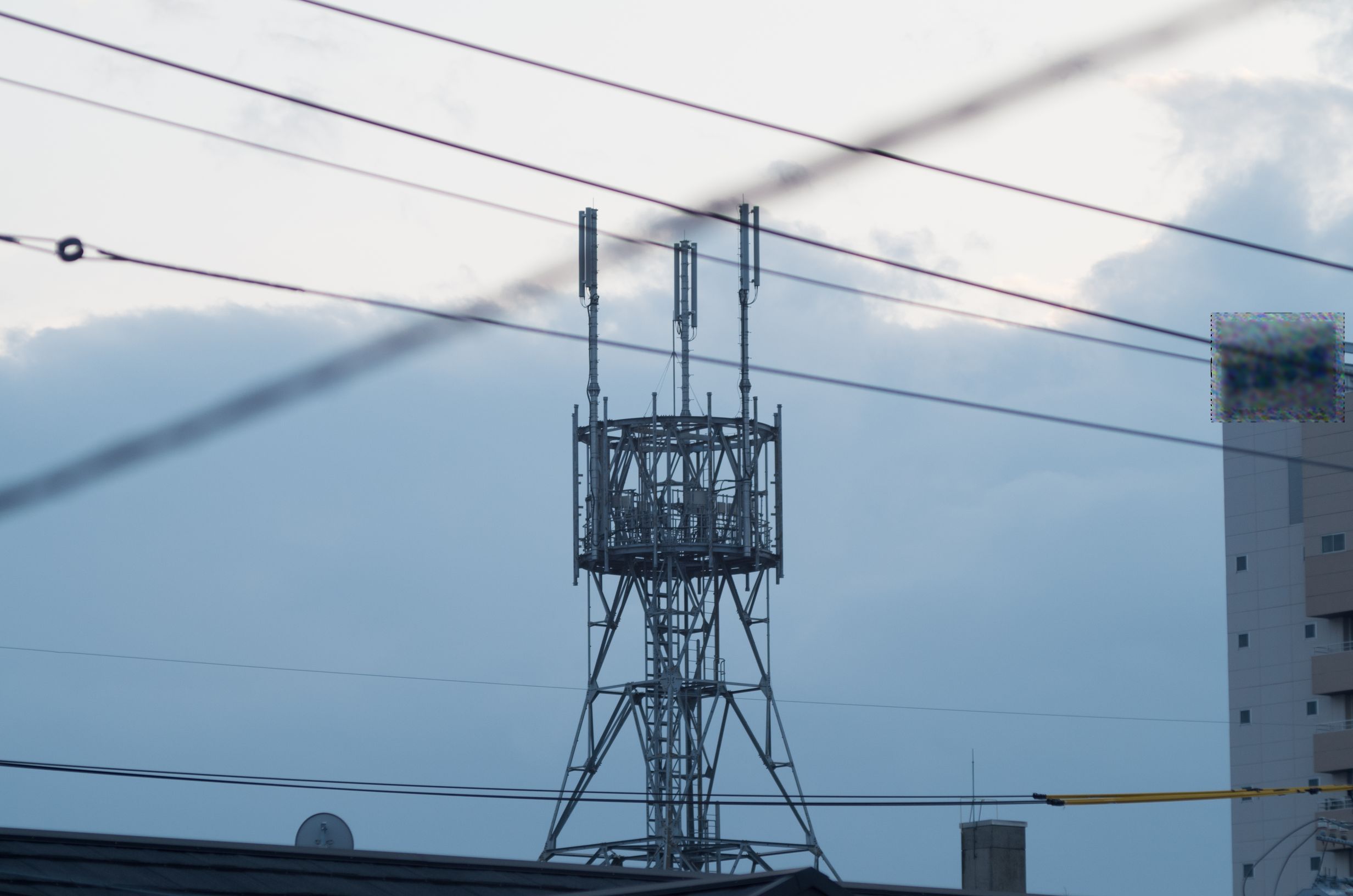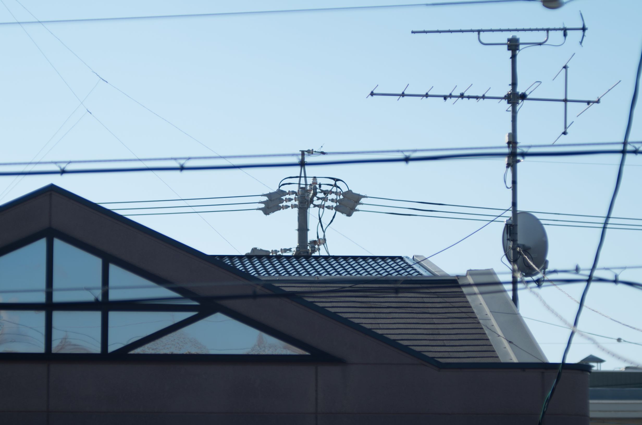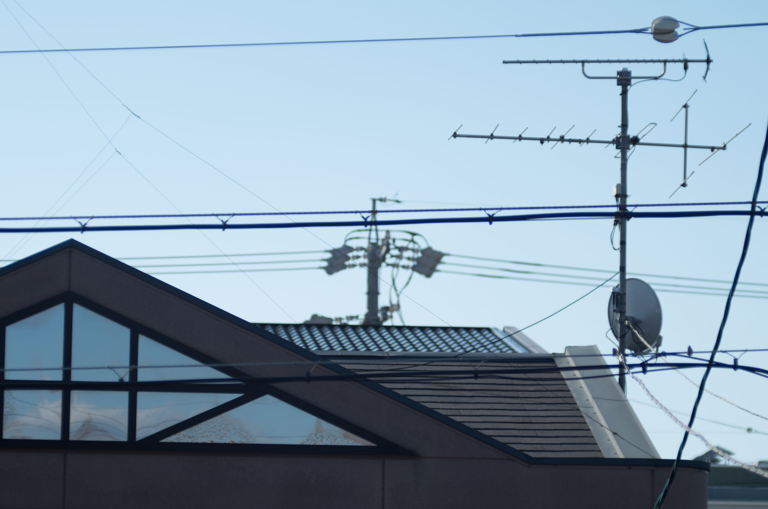後ボケは嫌いじゃない。建物の輪郭線は滲んで、電線は3重にボケてる。