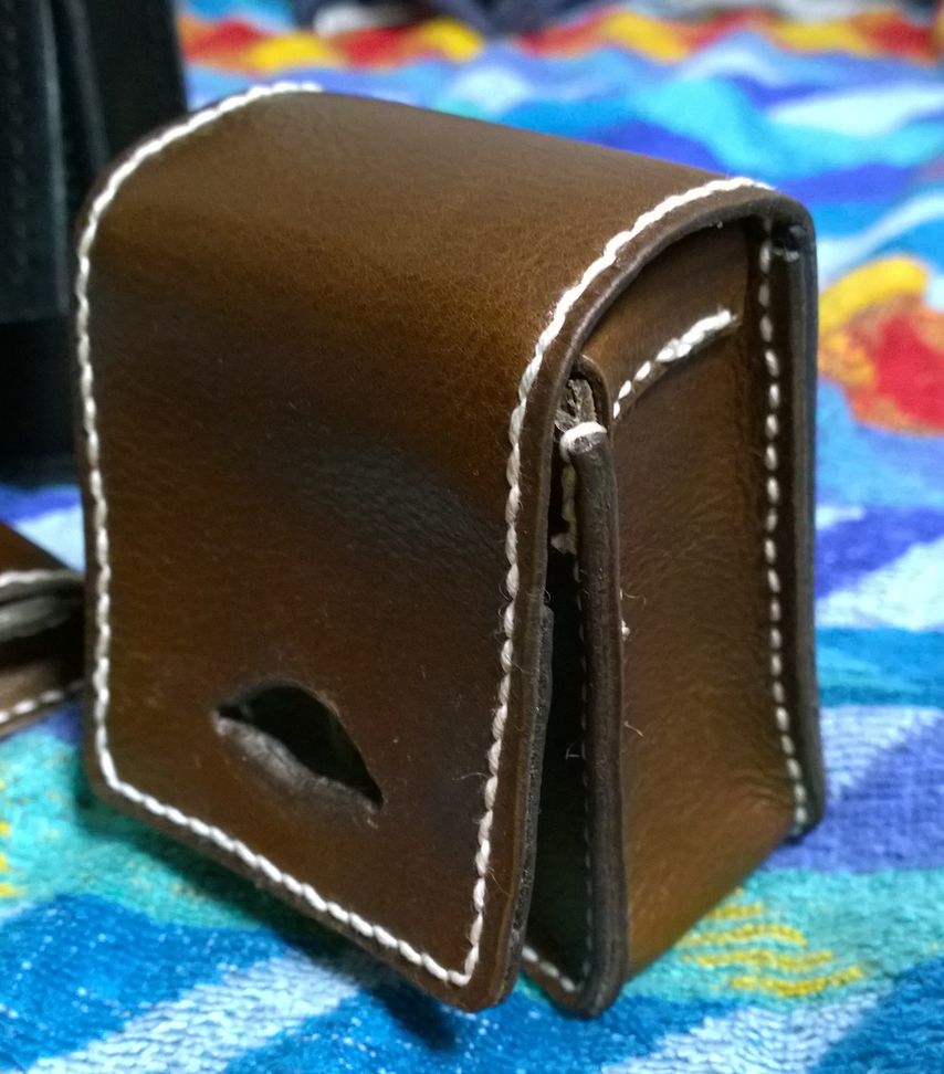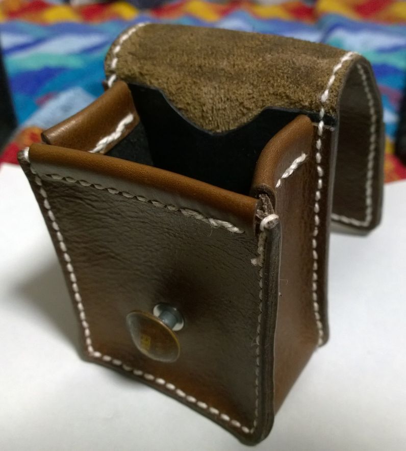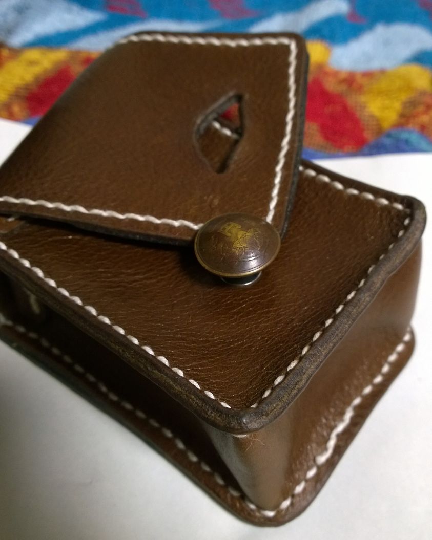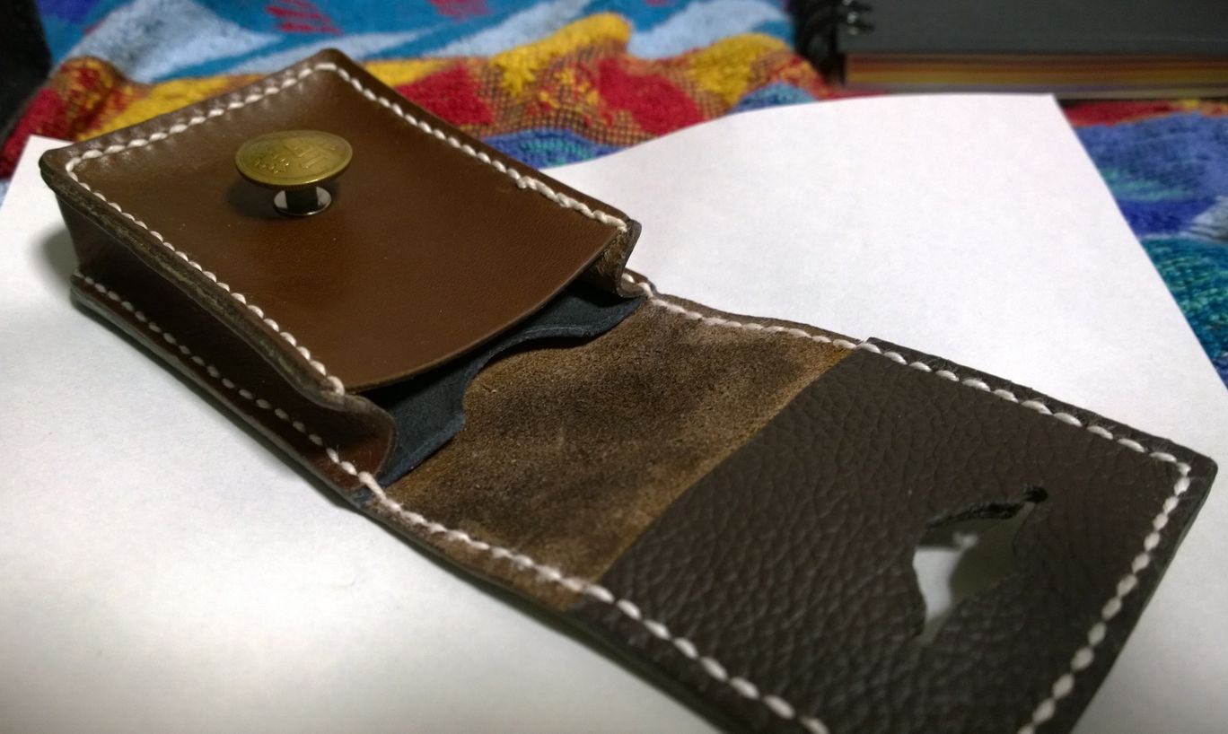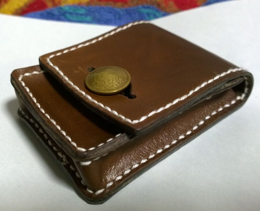1ヶ月前に某店から仔牛革の半裁を買った時についてきたおまけのA4の端切れで小銭入れとわかば・ゴールデンバット用タバコケースを作った。